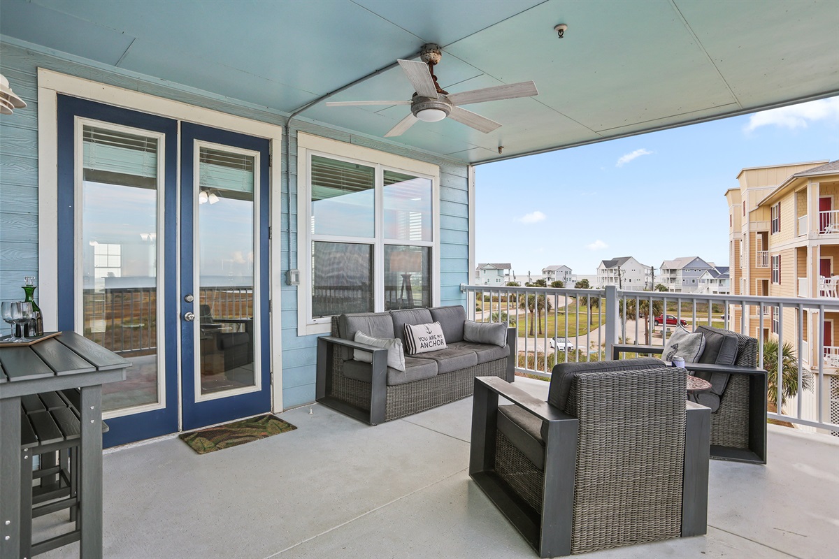 Take in stunning bay sunsets (and sunrise) from the spacious back balcony. The front balcony offers Gulf views, giving you the best of both worlds.